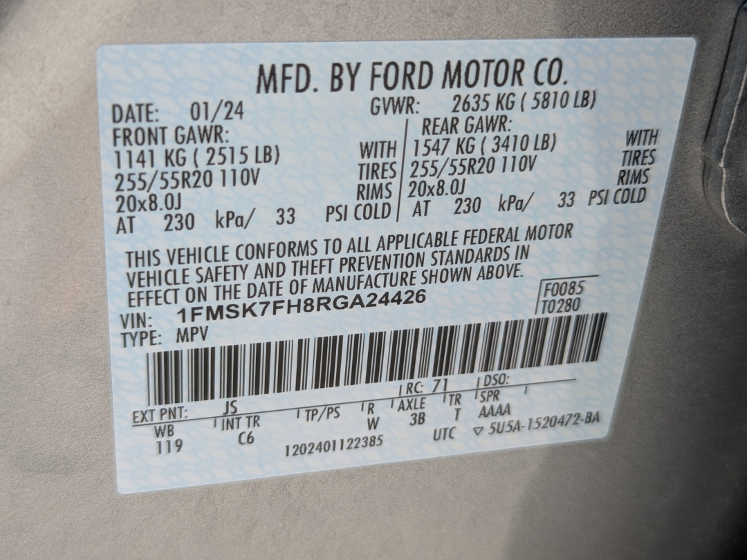 - Vin #: 1FMSK7FH8RGA24426
