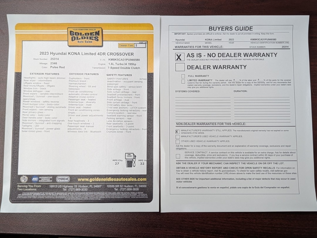 Guaranteed: Low Dealer Fee of $495.00.