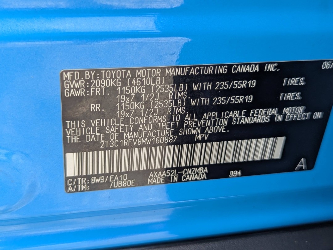- Vin #: 2T3C1RFV8MW160887
