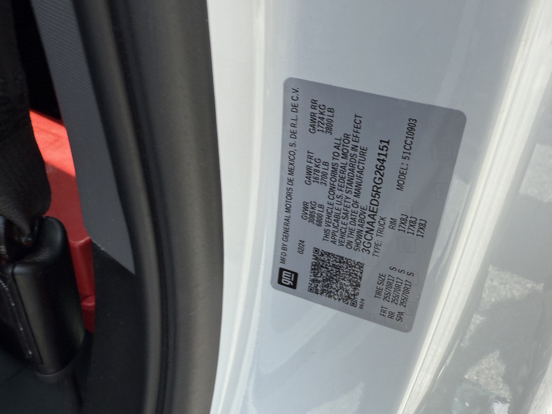- Vin #: 3GCNAAED5RG264151