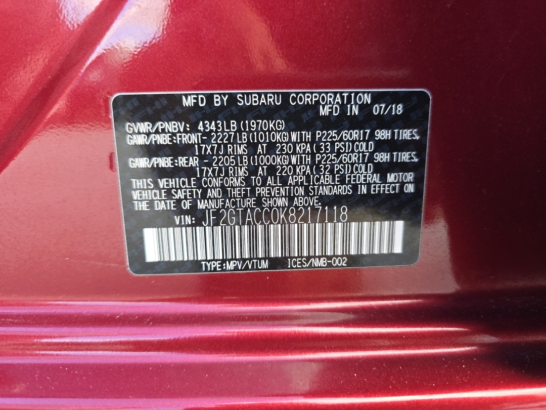 - Vin #: JF2GTACC0K8217118